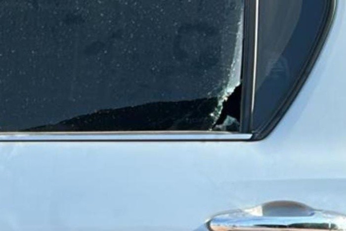 En el escrito se señaló que "de un momento a otro sufrió un impacto de bala" en "la ventana trasera izquierda del vehículo, haciendo notar que tal impacto ocasionó la rotura total del vidrio de la ventana".