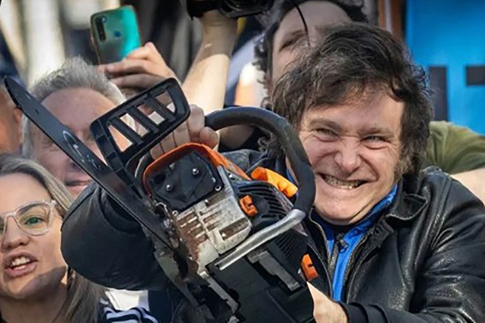 Milei cuenta que cuando se quedó sin laburo, y tenía la guita de la indemnización —esas son sus palabras—, al menos podía sacar cuentas de cuánto tiempo podía sobrevivir. Comía una pizza por día, almorzaba y cenaba con pizza, y llegó a pesar 120 kilos.