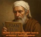 Entonces le preguntaron por señas al padre cómo quería que se llamara el niño. Él pidió una tablilla y escribió: “Juan es su nombre”. Todos se quedaron extrañados. En ese momento a Zacarías se le soltó la lengua, recobró el habla y empezó a bendecir a Dios.